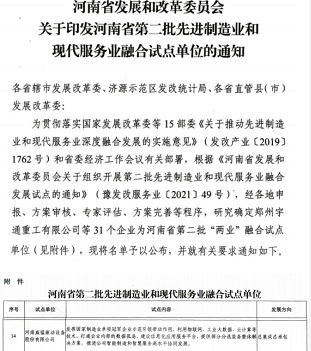 先进制造业+现代服务业 2021年10月9日,河南省发展和改革委员会印发河南省二批先进制造业和现代服务业融合试点单位的通知,研究确定了31家...